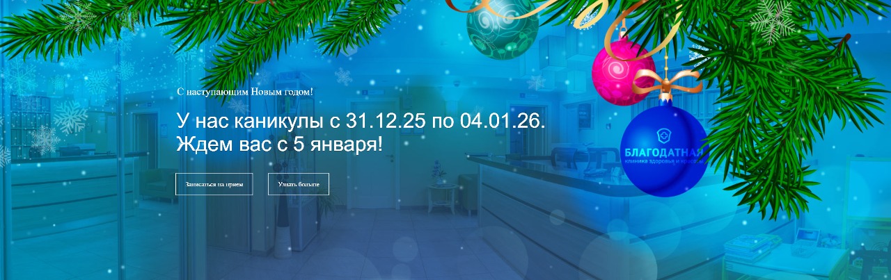 Клиника «Благодатная» постоянно расширяет спектр своих услуг, открывает новые кабинеты, привлекает лучших специалистов города. Наши доктора неоднократно становились обладателями наград от ведущих информационных медицинских порталов «НаПоправку», «СберЗдоровье», «ПроДокторов».
