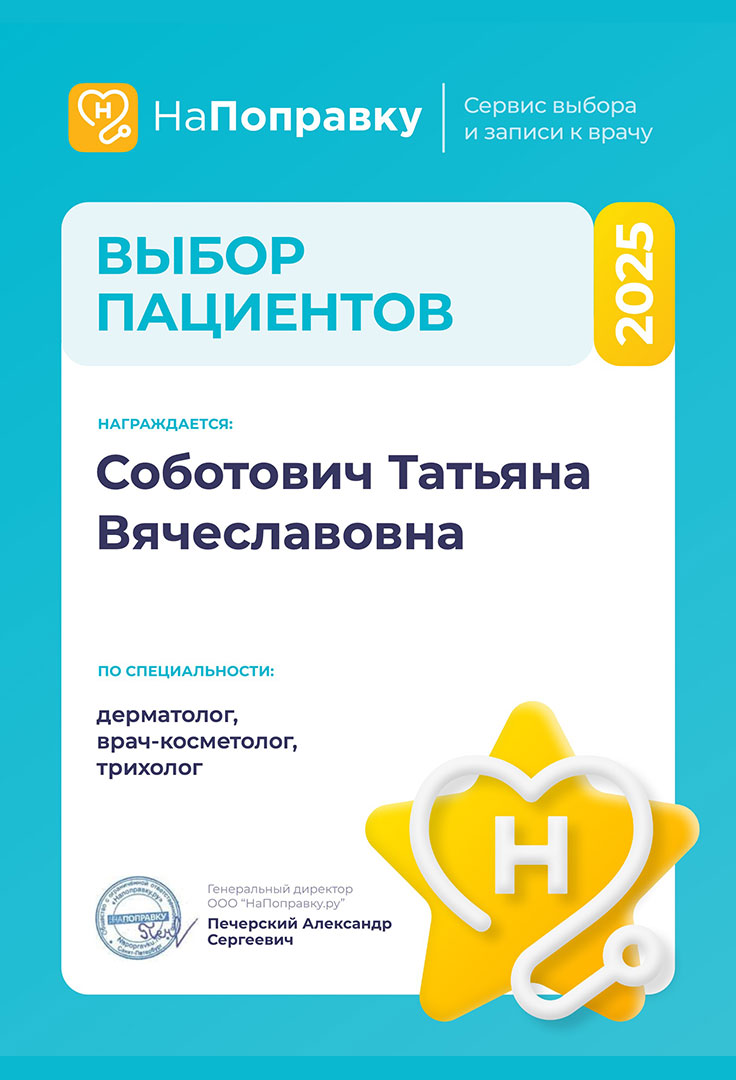 - Регулярно посещает конференции, семинары по актуальным вопросам косметологии и трихологии.